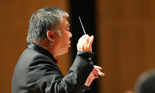 Conductor Shao En is pictured during a symphony concert in National Library Arts Center in Beijing, capital of China, June 24, 2019. The original symphony "The Great Wall" made its debut here on Monday. (Xinhua/Han Xiaoyu)