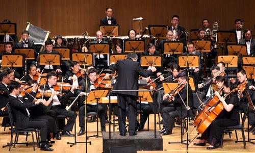 Beijing Symphony Orchestra perform the original symphony "The Great Wall" in National Library Arts Center in Beijing, capital of China, June 24, 2019. The original symphony "The Great Wall" made its debut here on Monday. (Xinhua/Han Xiaoyu)