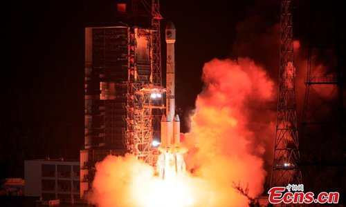 China sent a new satellite of the BeiDou Navigation Satellite System (BDS) into space from the Xichang Satellite Launch Center in Sichuan Province at 2:09 a.m. Tuesday.Launched on a Long March-3B carrier rocket, the satellite was sent to the inclined geosynchronous earth orbit. It is the 46th satellite of the BDS satellite family and the 21st satellite of the BDS-3 system.The design of the BDS constellation is unique, including medium earth orbit (MEO), geostationary earth orbit (GEO) and inclined geosynchronous earth orbit (IGEO) satellites. (Photo: China News Service/ Guo Wenbin)