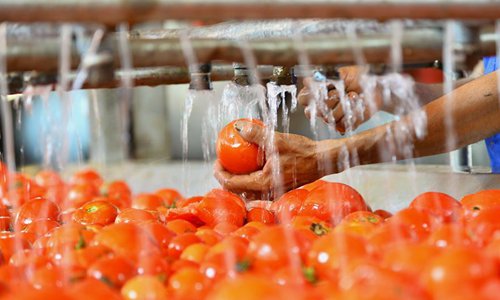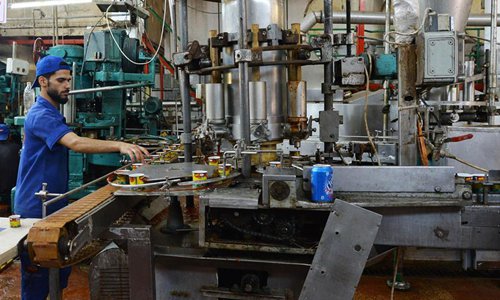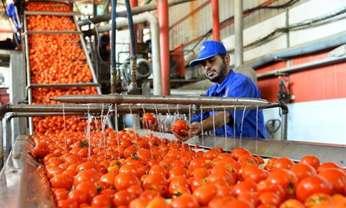 A Palestinian employee works at a tomato paste factory at the Jabalia refugee camp in the northern Gaza Strip, June 24, 2019. (Xinhua/Stringer)