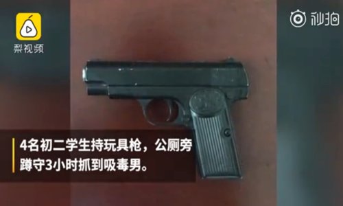 Four middle-school students in Southwest China's Sichuan Province, who dream of becoming police officers brandished toy guns to catch a drug addict.