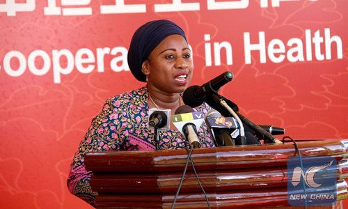 File photo shows that Ummy Mwalimu, Tanzanian Minister of Health, delivers her speech during a ceremony to mark the 50th anniversary of China's dispatch of medical teams inTanzania, in Dar Es Salaam, Tanzania, Oct. 29, 2018. The Chinese Embassy in Tanzania has announced the launch of a new program called Health Cooperation Benefiting Tanzania aimed at providing freemedical services in remote and rural areas. (Photo: Xinhua)