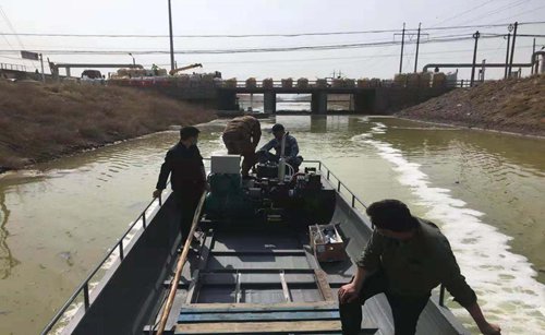 Local employees are throwing chemicals into the Weitan River in order to tackle the pollution in Weifang, East China's Shandong Province. Photo: courtesy of Ministry of Ecology and Environmental (MEE)