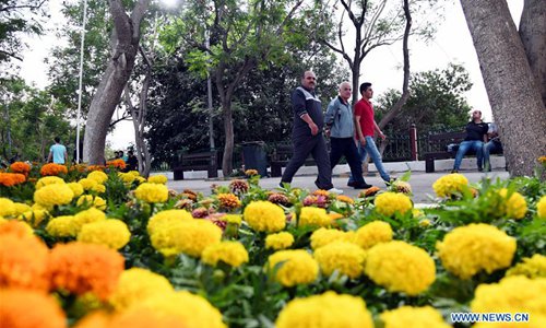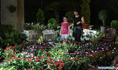 People visit the International Flowers' Fair 2019 at the Tishreen Park in Damascus, Syria, on June 26, 2019. The fair opened to the public on Wednesday and will last until July 10. (Photo: Xinhua)