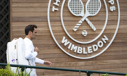 Roger Federer arrives for a training session in Wimbledon, London on Wednesday. Photo: IC