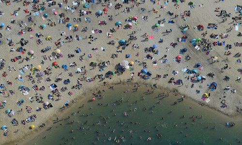 People cool off at a lake in Haltern am See, western Germany on Wednesday as temperatures topped 38 C. Europeans are baking in what forecasters are warning will likely be record-breaking temperatures for June with the mercury set to hit 40 C as summer kicks in on the back of a wave of hot air from North Africa. Photo: AFP