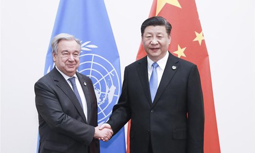 Chinese President Xi Jinping (R) meets with UN Secretary-General Antonio Guterres in Osaka, Japan, June 28, 2019. (Xinhua/Pang Xinglei)
