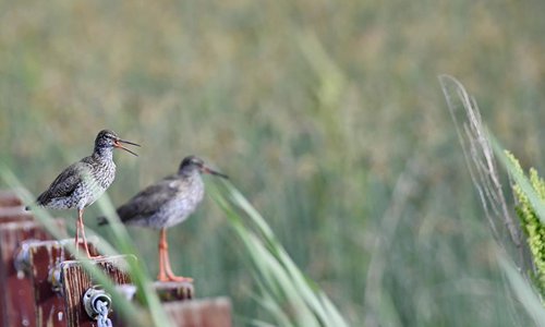 Common redshanks are seen at Lhalu wetland in Lhasa, southwest China's Tibet Autonomous Region, June 26, 2019. Lhalu wetland national nature reserve is known as "the Lung of Lhasa". (Xinhua/Zhang Rufeng)