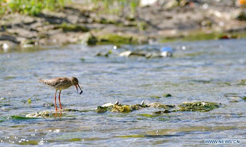 A common redshank is seen at Lhalu wetland in Lhasa, southwest China's Tibet Autonomous Region, June 27, 2019. Lhalu wetland national nature reserve is known as "the Lung of Lhasa". (Xinhua/Zhang Rufeng)