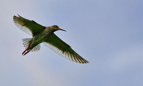 A common redshank flies over Lhalu wetland in Lhasa, southwest China's Tibet Autonomous Region, June 26, 2019. Lhalu wetland national nature reserve is known as "the Lung of Lhasa". (Xinhua/Zhang Rufeng)
