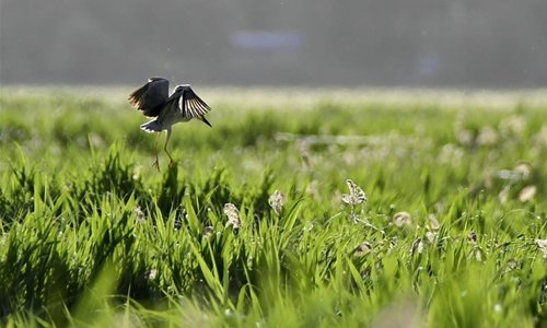 A night heron is seen at Lhalu wetland in Lhasa, southwest China's Tibet Autonomous Region, June 26, 2019. Lhalu wetland national nature reserve is known as "the Lung of Lhasa". (Xinhua/Zhang Rufeng)