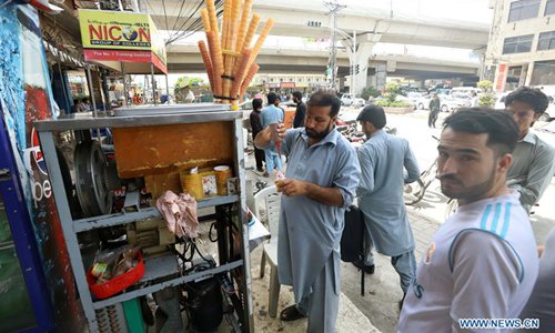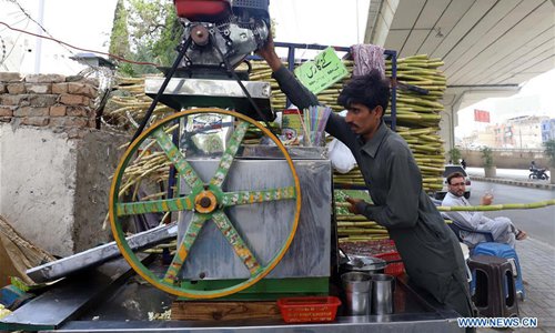 A vendor makes sugar cane juice during a heatwave in Rawalpindi, Pakistan, on June 29, 2019, as temperature reached 42 degrees Celsius. (Photo: Xinhua)
