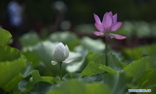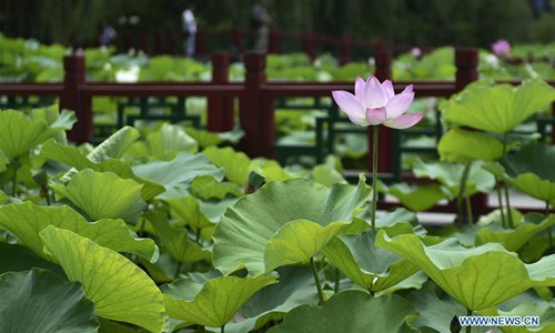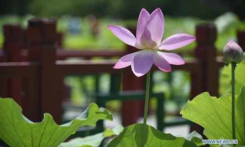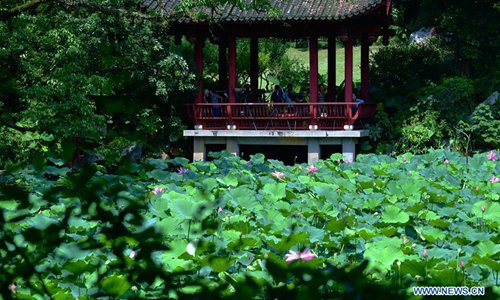 Lotus flowers are seen at the West Lake Park in Fuzhou, capital of southeast China's Fujian Province, June 29, 2019. (Photo: Xinhua)