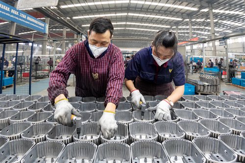 Workers produce auto parts in East China's Jiangsu Province on Thursday. Photo: VCG