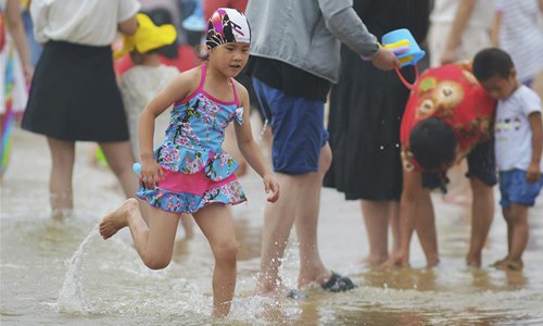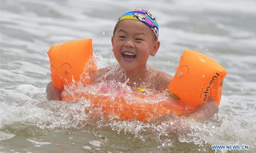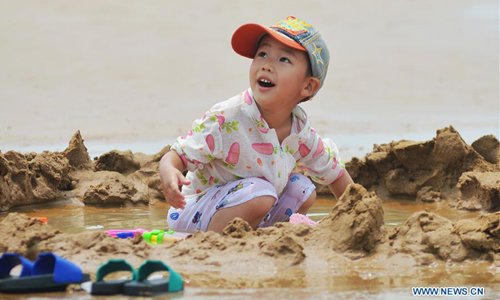A child plays at the Shilaoren beach in Qingdao, east China's Shandong Province, June 30, 2019. (Photo: Xinhua)