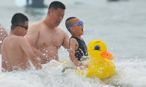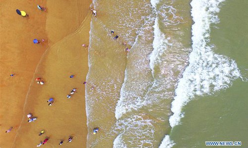 Visitors have fun at the Shilaoren beach in Qingdao, east China's Shandong Province, June 30, 2019. (Photo: Xinhua)