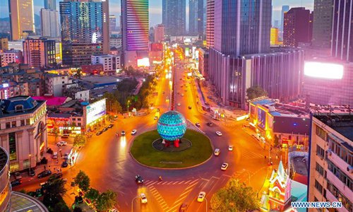 Aerial photo taken on June 19, 2019 shows the Youhao Square in Dalian, northeast China's Liaoning Province. The 2019 Summer Davos meeting will be held from July 1-3 in northeast China's coastal city of Dalian, with globalization in the spotlight. Also known as the 13th Annual Meeting of the New Champions, this year's forum will feature the theme "Leadership 4.0: Succeeding in a New Era of Globalization." (Photo: Xinhua)