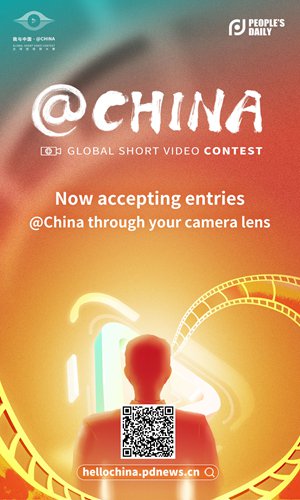 The "@China" global short video contest, sponsored by the People's Daily, is underway. The contest is accepting work from short video creators, enthusiasts, and vloggers worldwide from June 18 to August 15. Candidates can enter by logging on to the contest's official website (hellochina.pdnews.cn) and submit a 3-minute or less video.
