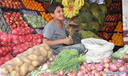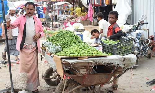 A child sells agricultural products at a public market in the government-controlled souther province of Dhalea city, Yemen, July 1, 2019. For over five years, Yemen experienced a prolonged conflict pitting the country's government forces backed by a Saudi-led coalition against the Houthi rebels allied with Iran. The armed confrontations are still ongoing and expanding further to new areas, forcing thousands of helpless Yemeni people to cope with most difficult living conditions caused by the deadly years-long conflict. (Photo: Xinhua)