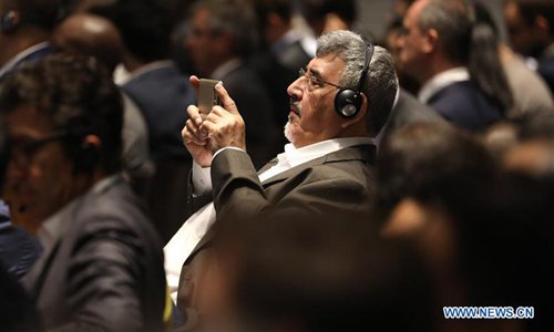 Delegates are seen at the Dalian International Conference Center, venue of the Annual Meeting of the New Champions 2019, also known as Summer Davos, in Dalian, northeast China's Liaoning Province, July 2, 2019. The opening plenary of Summer Davos is held here on Tuesday. (Photo: Xinhua)