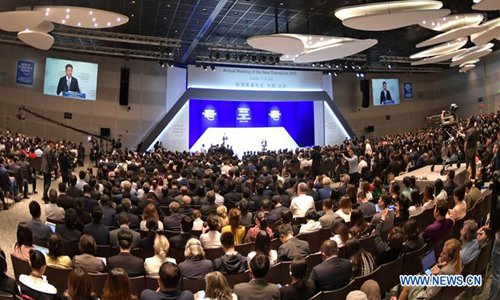 Delegates attend the opening plenary of the Annual Meeting of the New Champions 2019, also known as Summer Davos, in Dalian, northeast China's Liaoning Province, July 2, 2019. (Photo: Xinhua)