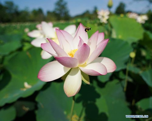 Lotus flowers are seen at Kenilworth Park & Aquatic Gardens in Washington D.C., the United States, on July 3, 2019. (Photo: Xinhua)