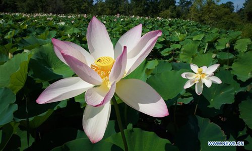 Lotus flowers are seen at Kenilworth Park & Aquatic Gardens in Washington D.C., the United States, on July 3, 2019.(Photo: Xinhua)