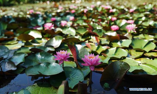 Water lilies are seen at Kenilworth Park & Aquatic Gardens in Washington D.C., the United States, on July 3, 2019.(Photo: Xinhua)