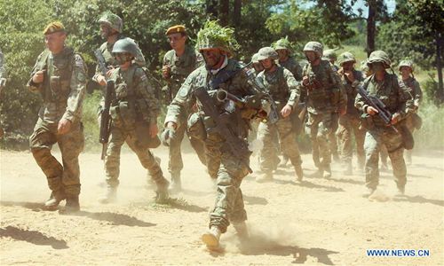 Croatian soldiers participate in the military exercise Puma 19 in Slunj, Croatia, on July 3, 2019. (Photo:Xinhua)