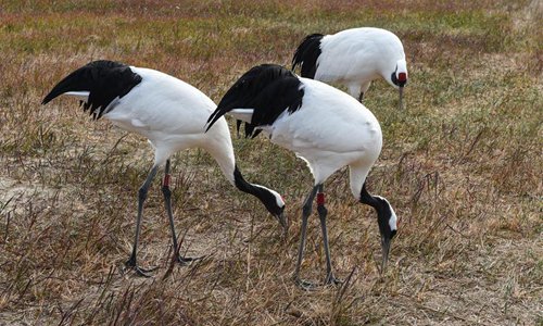 Red-crowned cranes are seen at the Yancheng Wetland and Rare Birds National Nature Reserve in east China's Jiangsu Province, Nov. 15, 2017. China's Migratory Bird Sanctuaries along the coast of the Yellow Sea-Bohai Gulf (Phase I) were inscribed on the World Heritage List as a natural site on Friday at the ongoing 43rd session of the UNESCO World Heritage Committee in Azerbaijan's capital of Baku. Migratory Bird Sanctuaries along the coast of the Yellow Sea-Bohai Gulf of China are located in the Yellow Sea ecoregion, containing the world's largest continuous mudflat seashore. It is the central node of the East Asian-Australasian Flyway (EAAF), which is the most threatened migratory flyway worldwide and boasts the largest number of endangered and critically endangered species. The area has a high biodiversity, with about 280 species of fishes and more than 500 species of invertebrates, providing a variety of food resources for millions of migratory birds. (Xinhua/Li Bo)