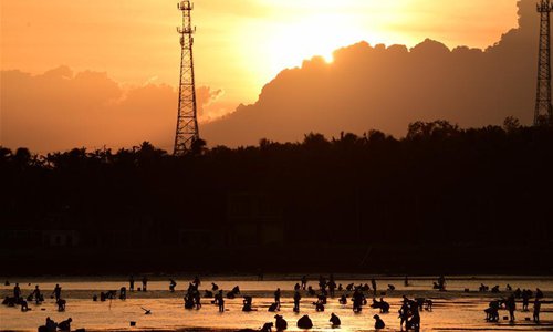 People join in beachcombing for shells along the seaside of Qingge Port of Changpo Town in Qionghai City, south China's Hainan Province, July 5, 2019. (Photo by Meng Zhongde/Xinhua)