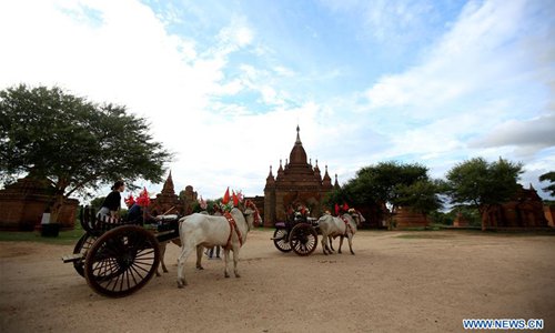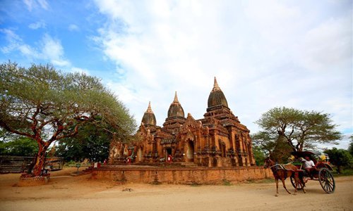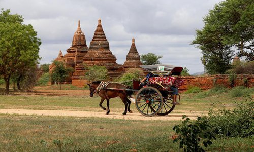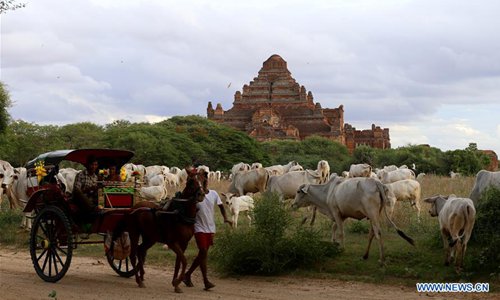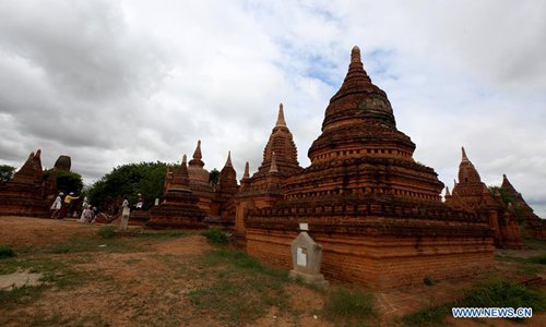 A temple is seen in the ancient city of Bagan, Myanmar, July 5, 2019. Myanmar is campaigning for Bagan, an ancient city in the central part of the country, to be included in the 2019 UNESCO World Heritage list. (Xinhua/U Aung)