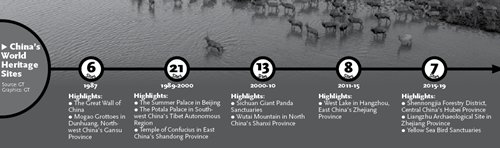 Challenges aheadWith these two new additions, China now has 55 World Heritage sites, the highest number in the world. While these 37 cultural sites, 14 natural sites and four cultural/natural heritage sites are a source of pride, they also brings with them heavy responsibility.