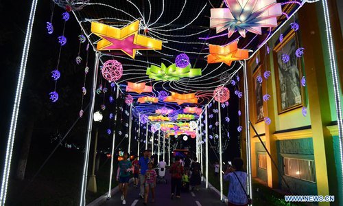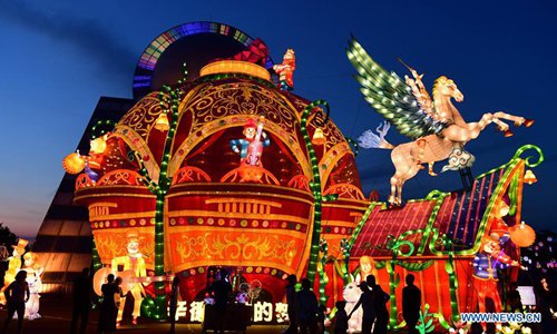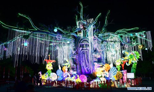 Visitors view lanterns at a lantern show in Changchun, northeast China's Jilin Province, July 8, 2019. (Photo: Xinhua)