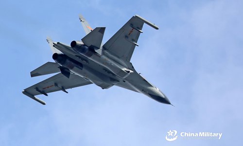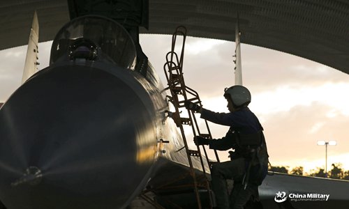 A fighter jet attached to an aviation brigade of the air force under the PLA Southern Theater Command soars over the sky during a round-the-clock flight training exercise on July 4, 2019. (Photo: eng.chinamil.com.cn)