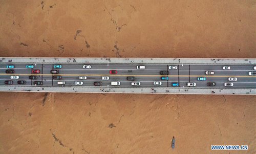 Aerial photo taken on July 9, 2019 shows the Juzizhou Islet Bridge over the flooded Xiangjiang River in Changsha, central China's Hunan Province. Hunan hydrology and water resources investigation bureau issued a red alert for flood on Tuesday. As of 3 p.m. Tuesday, the water level of Xiangjiang River in Changsha has exceeded the alert level. The Juzizhou Islet scenic spot, located in Xiangjiang River, has closed for safety. (Photo: Xinhua)