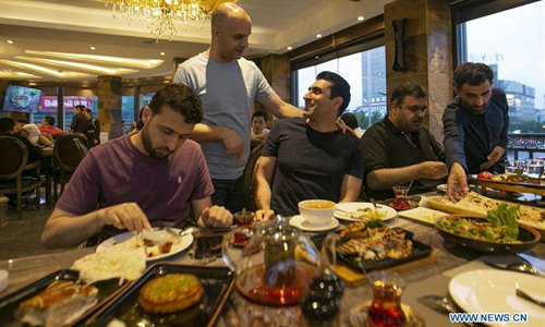 Aziz (3rd L) chats with his friend, a Jordanian restaurant owner, in Yiwu City, east China's Zhejiang Province, July 9, 2019. Aziz Ullah, 41, came to Yiwu City in east China's Zhejiang Province in 2003 with his partners after his graduation from university in his home country Afghanistan. It was his first time to come to Yiwu to shop for smallware. In 2005, Aziz started his own company after being an agent for about 2 years. In recent years, the Belt and Road Initiative has brought tremendous opportunities for Aziz's company. He bought more than 200 containers of articles a year and exports them to Afghanistan, Britain, the Netherlands, Ukraine and other countries. At the same time, with the help of the China Railway Express, He imported Afghanistan's handmade carpets, dried fruits, saffron and other specialty products to China. Aziz, who has lived in Yiwu City for almost 17 years, is also a mediator of a mediation committee, which aims to help solve disputes involving foreigners. "Yiwu is my second hometown. I feel comfortable doing business and living here." Aziz said. (Photo: Xinhua)