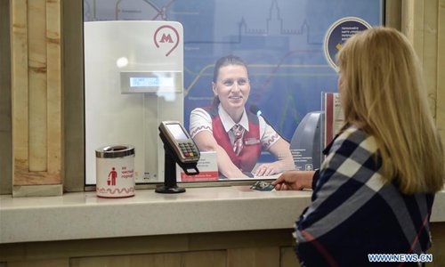A passenger buys the limited edition of Moscow metro card Troika with a giant panda image in Moscow, Russia, on July 10, 2019. Moscow subway released a limited edition of 10,000 metro cards with Chinese giant panda images to mark the 155th anniversary of Moscow Zoo that accepted two giant pandas Ru Yi and Ding Ding in late April from China. (Photo: Xinhua)
