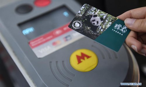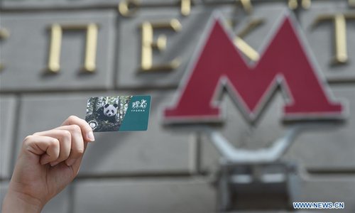 The photo taken on July 10, 2019 shows a limited edition metro card Troika with a giant panda image in Moscow, Russia. Moscow subway released a limited edition of 10,000 metro cards with Chinese giant panda images to mark the 155th anniversary of Moscow Zoo that accepted two giant pandas Ru Yi and Ding Ding in late April from China. (Photo: Xinhua)