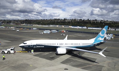 A Boeing 737 MAX 9 taxis to its hangar following its first flight at Boeing Field on April 13, 2017 in Seattle, Washington. Photo: VCG