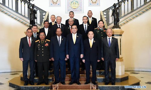 Thai Prime Minister Prayut Chan-o-cha(3rd R front) poses for a group photo with delegates who are here attending the 13th ASEAN Defense Ministers Meeting, in Bangkok, Thailand, July 11, 2019. Defense Ministers of Association of Southeast Asian Nations (ASEAN) have signed the Joint Declaration on Sustainable Security here on Thursday to promote cooperation among ASEAN to counter non-traditional, transnational threats. (Xinhua)