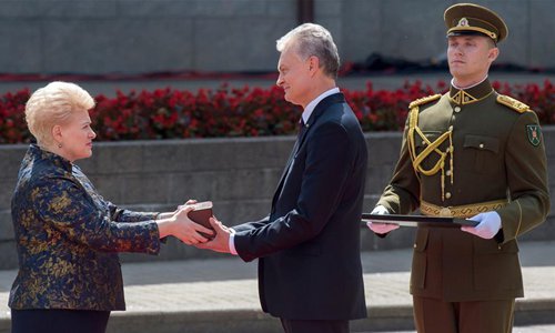 Nauseda, 55, formerly an economist at one of the country's largest banks, started his swearing-in ceremony at the country's parliament where he made his first speech as the Lithuanian president.