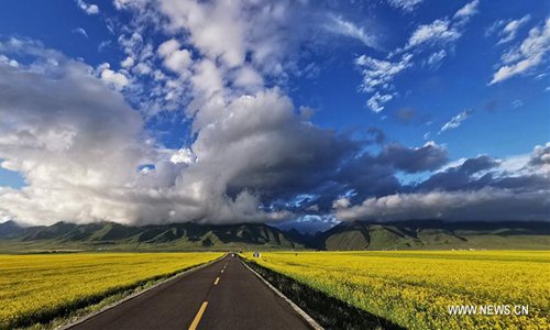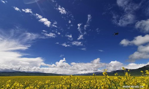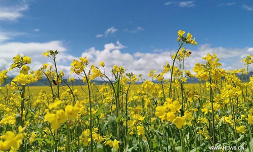Photo taken on July 8, 2019 shows blooming cole flowers in Menyuan Hui Autonomous County of northwest China's Qinghai Province. Photo:Xinhua