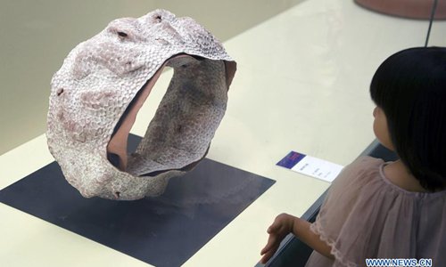 A visitor views a pottery work displayed during the 14th Art Exhibition of Zhejiang Province held at Zhejiang Art Museum in Hangzhou, capital of east China's Zhejiang Province, July 12, 2019. More than 600 art works were on display during the 17-day exhibition. Photo:Xinhua