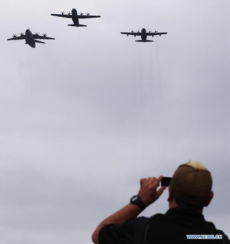 A man takes photos for the French military aircrafts during the annual Bastille Day military parade in Paris, France, on July 14, 2019.(Photo: Xinhua)