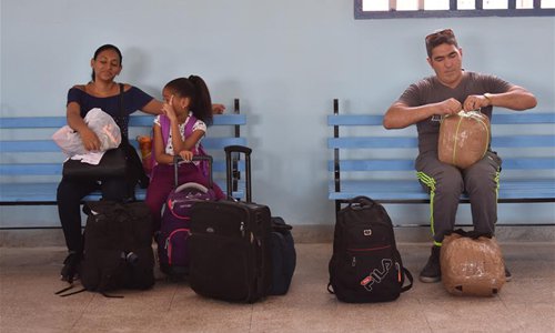 Passengers wait to board the train at Havana Central Railway Station in Havana, capital of Cuba, July 13, 2019. The first train made up entirely by Chinese wagons began a 14-hour, 835-km journey between Havana and Santiago de Cuba, the second-largest city on the island. This convoy has 12 wagons recently arriving from China, the first of four convoys to start rolling in the coming days as part of an ambitious program to update the Cuban railway system.(Photo: Xinhua)