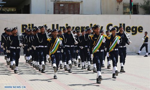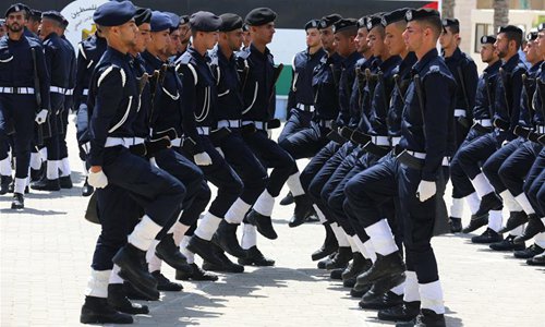 Palestinian Hamas security forces cadets carrying wooden rifles take part in a military graduation ceremony organized by the Palestinian Interior Ministry in Gaza City, July 16, 2019. (Photo: Xinhua)