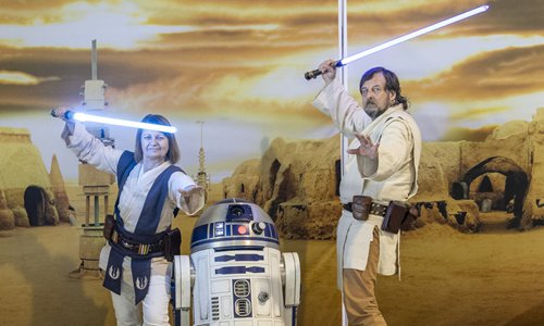 Star Wars cosplayers pose for a picture with R2-D2 at Comic-Con Germany in Berlin on June 29. Photo: AFP