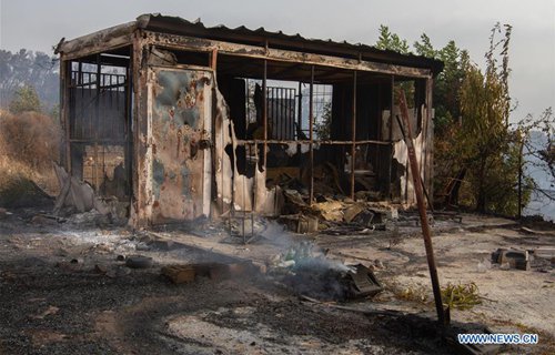 A burnt house is seen following a wildfire in the Arab town of Arara in northern Israel, on July 17, 2019. Wildfires broke out at several locations across Israel on Wednesday as an unexpected extreme heatwave hit the country. (Photo: Xinhua)