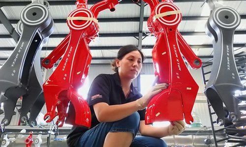 A female worker checks bicycle frame in East China's Jiangsu Province in 2017. Photo: VCG